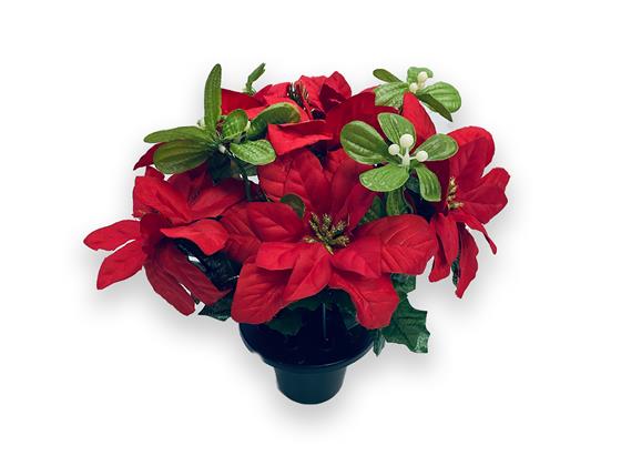 Artificial Poinsettia & Mistletoe Grave Pot 4