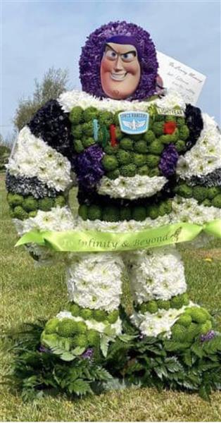This is a creative piece of buzz lightyear, approx 3ft tall, the face is laminate,
