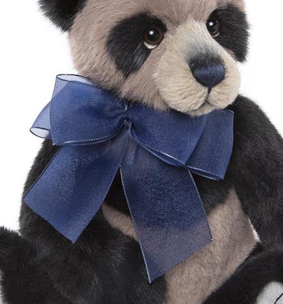 Snuggle up with Chess, our Plumo panda. This playful pal loves fun and games. Crafted from the softest black and beige plush with touches of alpaca, this cuddly panda boasts hand-embroidered detailing, deep endearing eyes, and a handsome blue organza bow.
