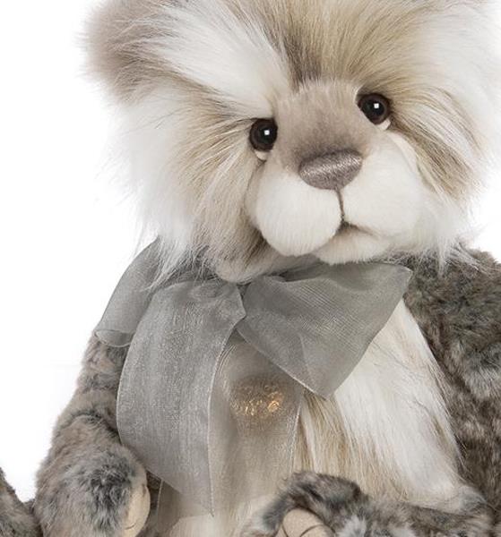 Conor is a big-hearted plush bear from The Clocktower Collection who is sure to make a wonderful companion. He has been sewn from a sumptuously soft and dense grey hued plush, with a fluffier long-pile plush, in shades of white, beige and grey for his torso and head. He has a cute mixed fur muzzle and a hand embroidered light brown nose. Conor is complete with a lovely grey organza bow and heart pendant.