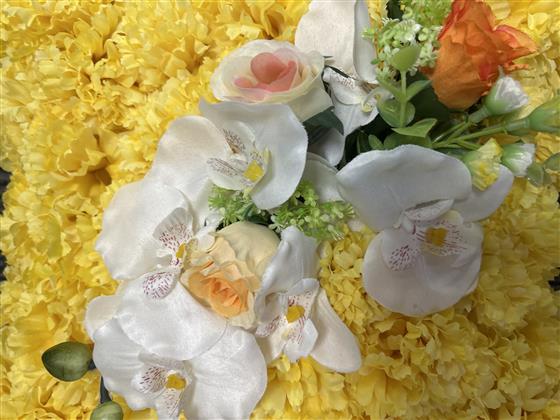 Artificial carnations with rose and orchid spray
