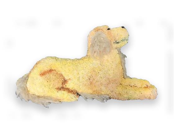 Retriever dog , based chrysanthemums and sprayed, flat base design. Dog breed can be changed, this may alter the price, Please call for more information.