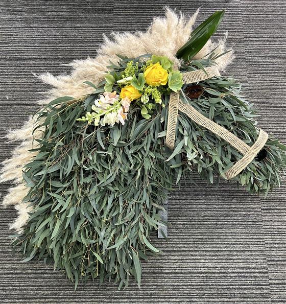 Natural eucalyptus horse head with sash
