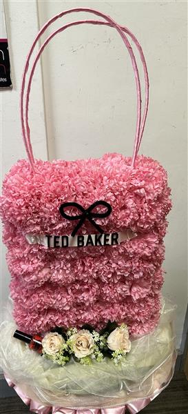 This is an artificial tribute, handbag designed as a ted baker bag, on a base to support the bag.