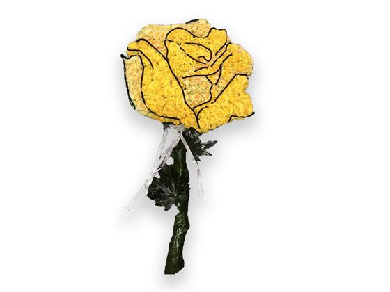 A stunning single rose made from large headed and small spray Bud roses, flower stem aspidistra leaves and aralia leaf.