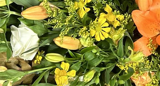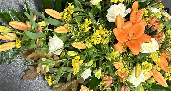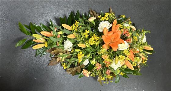 This is a large 2ft 6 x 18inch single ended spray, florist choice of seasonal flowers, so your spray will differ depending on availability of flowers. colours can be changed by using the drop down box selection.