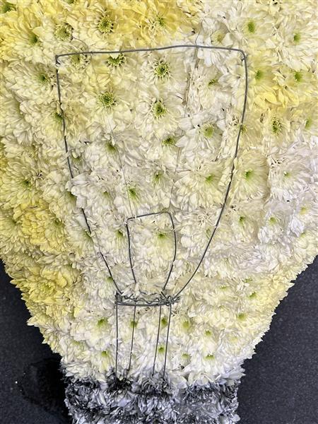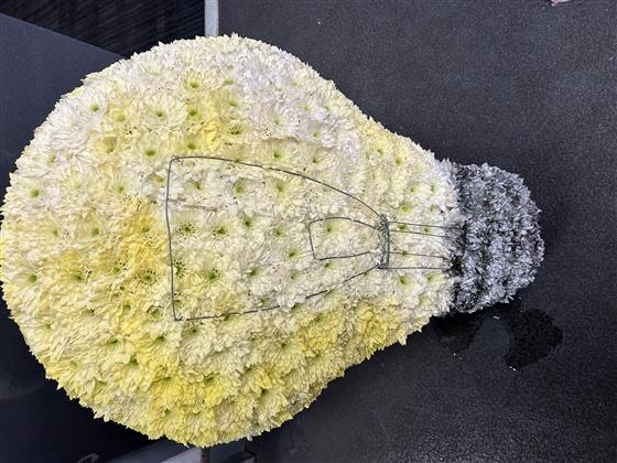 Light bulb designed with a touch of glow. Size approx 22inch x 14inch, based with chrysanthemums and sprayed.
