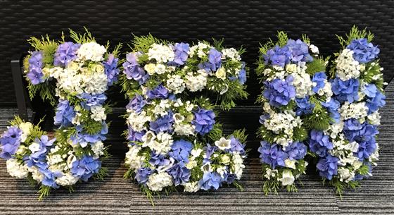 open letters , spray roses and seasonal flowers each letter is £65.00 PER LETTER