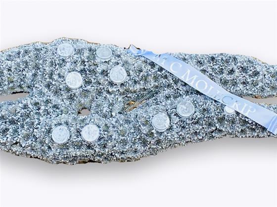 A detailed mole grip tribute, which is completely massed in chrysanthemums then sprayed sliver, then pieces are added for the spring and bolts sash is included in the price.