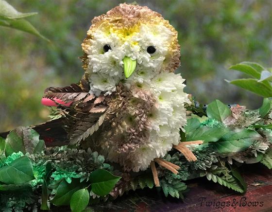 small barn owl designed on a branch, approx size 12" x 18" x 6"
