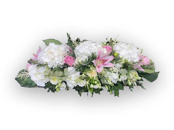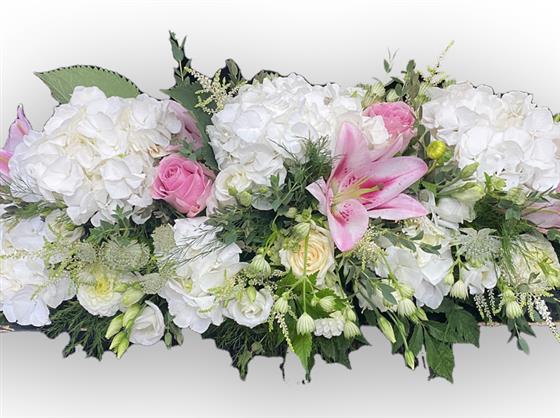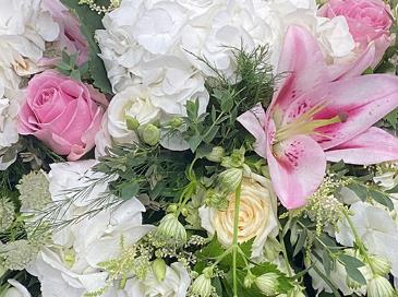 A 2ft table arrangement, compacted with a variety of flowers which includes Lillies, lizzy, roses, and hydrangea. Please Note the Hydrangea maybe substituted if unavailable.