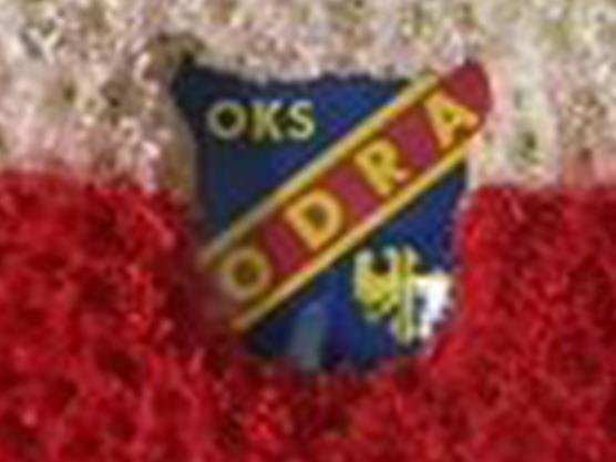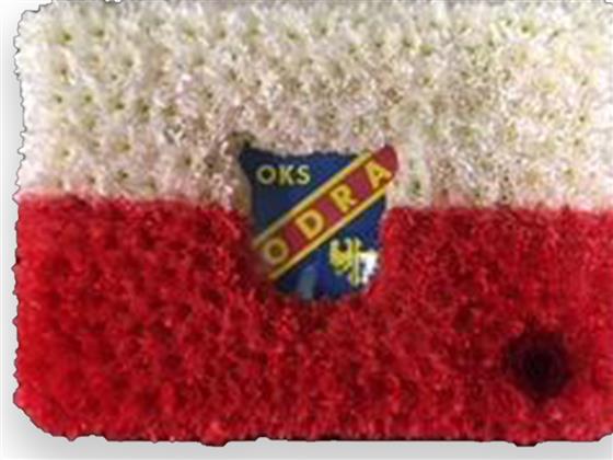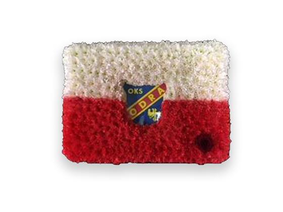 POLISH FLAG WITH FOOTBALL CLUB SYMBOL INSERTED.
