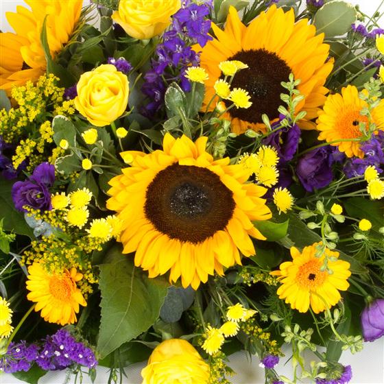 Purple & Gold Sunflower Casket Spray zoom 2Purple & Gold Sunflower Casket Spray zoom 3Purple & Gold Sunflower Casket Spray zoom 4