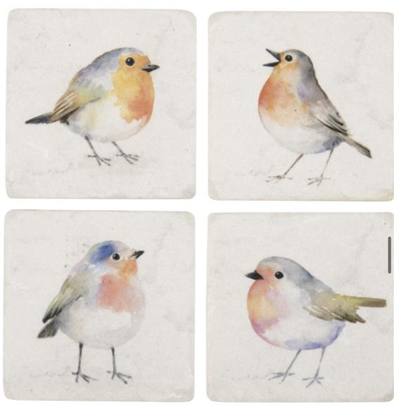 4 lovely tile coasters of a lovely Robin on each . Will come wrapped.