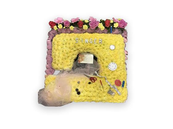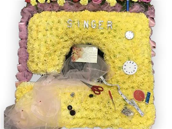 Singer sewing machine with choice of colour of machine, add sewing bits and pieces to the tributeand material, floral trim at top. Size is on a 2ft x 2ft board.