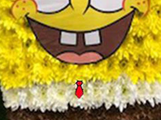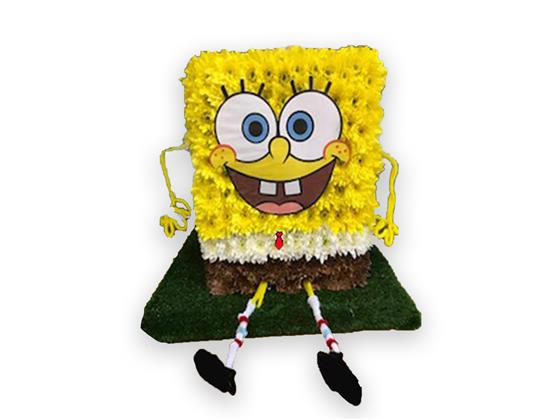 this is our sponge bob size approx width 8" x 15"h x 11' Placed onto a hard board base for support, which has been covered in fake grass matting.