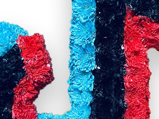 Tiktok tribute which is massed in chrysanthemums then sprayed in the three colours.