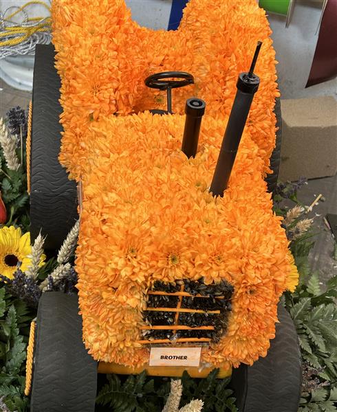 Tractor vintage on base 22inch x20inch x14inch height. Approx Made from chrysanthemum and a mixed of other materials.