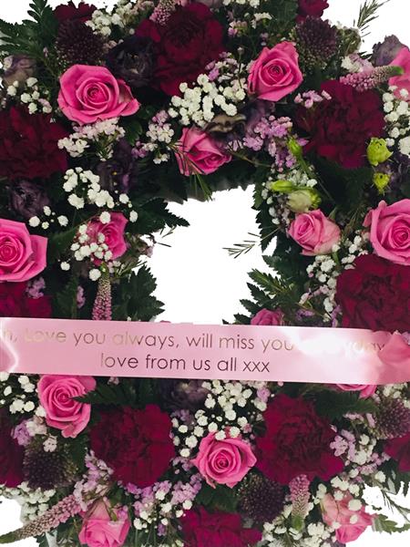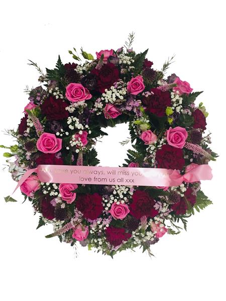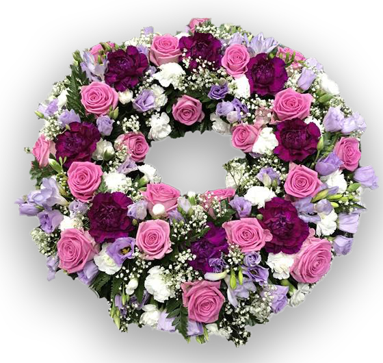 Ex large wreath , beautiful aqua roses, lilac lizzianthus, spray carnations, gyp, lilac freesia.
