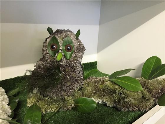 small long eared 3d small owl on a branch. approx size 18" x 12" x 5".