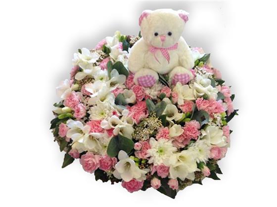 posy pad with small soft toy approx size6".SOFT TOY MAY VARY TO STOCK AVAILABLE.