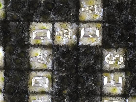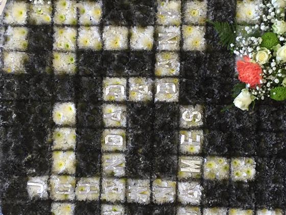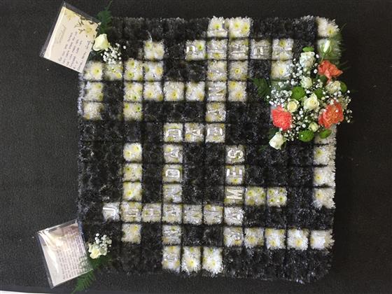 Large cross word 2ft X 2ft, this crossword has the names of the senders of the tribute.