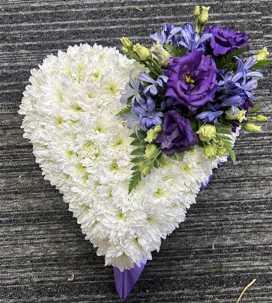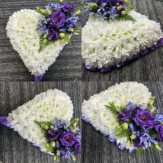 this is approx a 11inch overall size heart, based in white only. ribbon colour will match the corsage on the top.